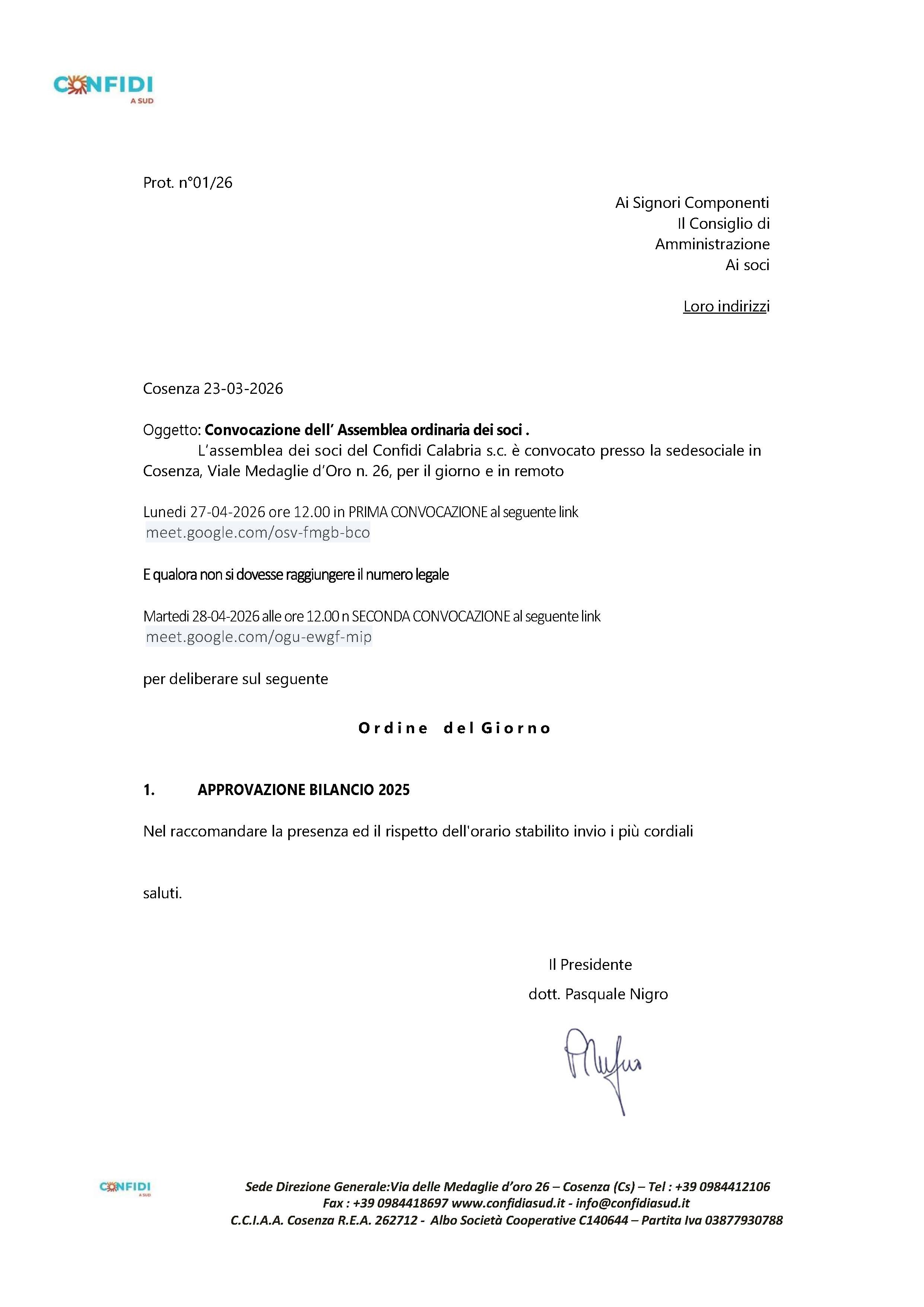 Convocazione soci 27 o 28 Aprile 2026 ore 12:00 in seconda convocazione